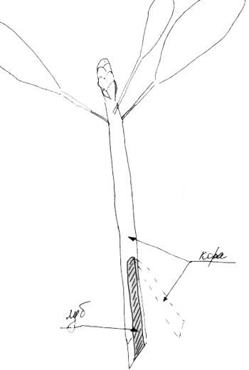 Не забудьте, что часть коры нужно обязательно срезать, так как именно в этом месте будут образовываться корни. Оголенная область должна составлять около 25% от оставшейся коры.