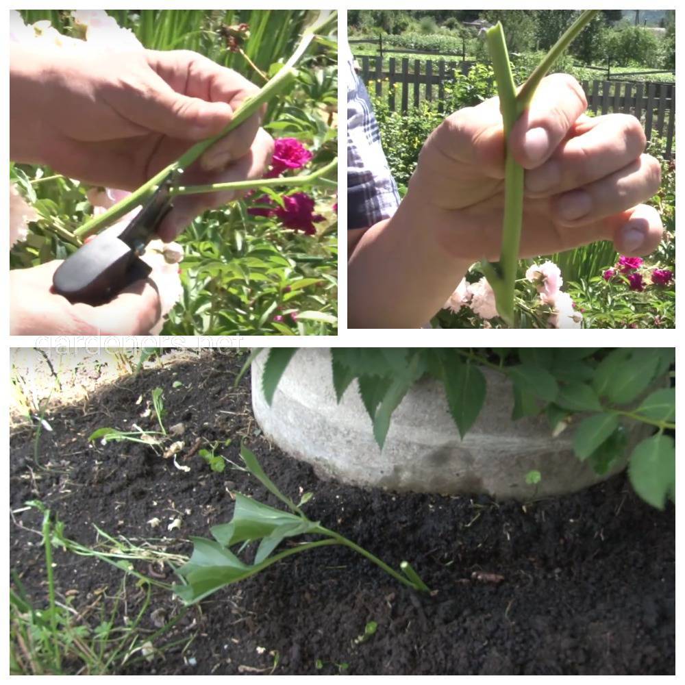 Черенки приживаются не очень хорошо, поэтому их следует заготавливать в большом количестве. Рекомендуется проводить эту процедуру за неделю до начала цветения пиона и в период его цветения.