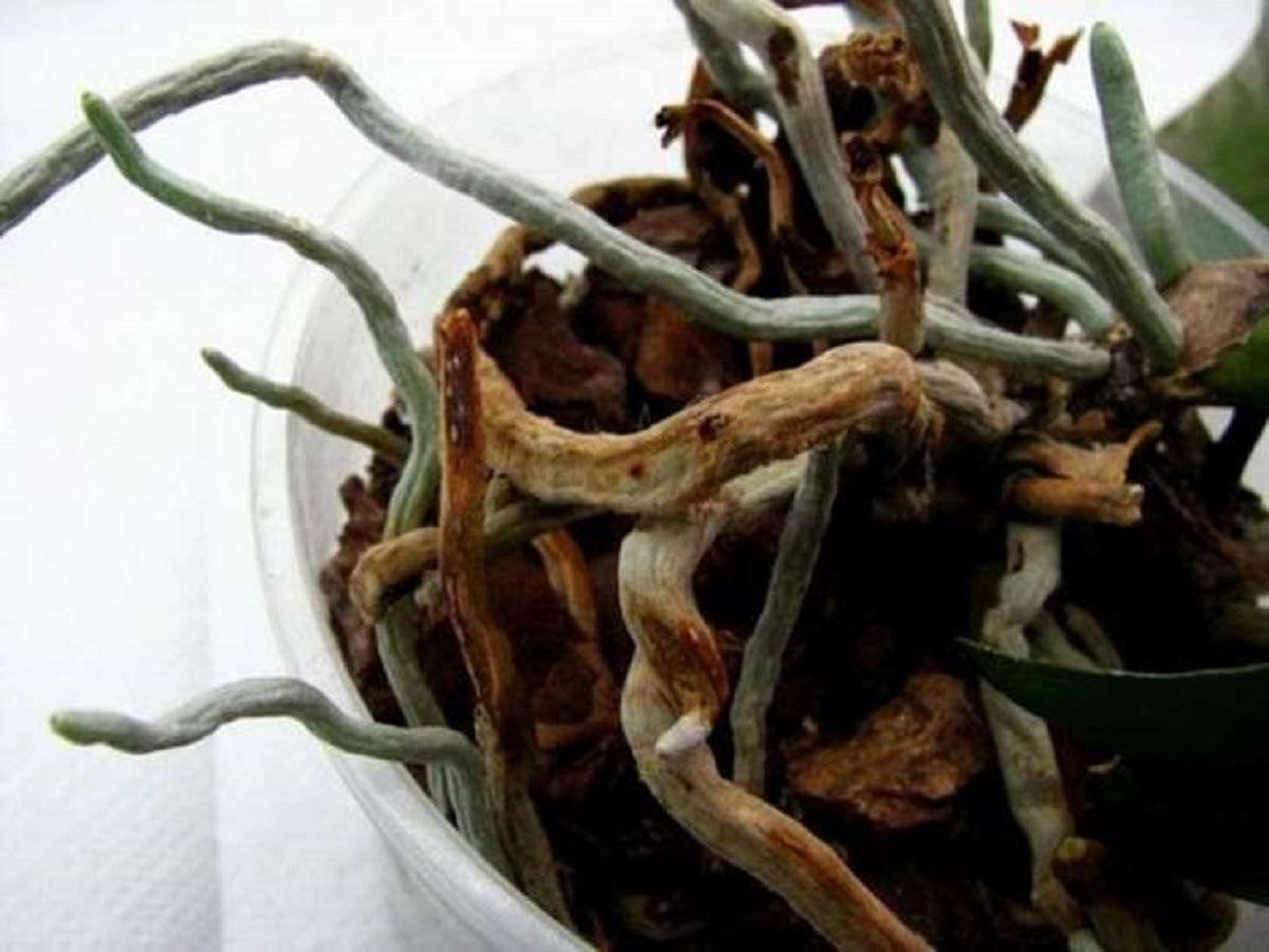 Проверьте корни орхидеи. Если они стали мягкими и коричневыми, это признак гниения. Осторожно удалите поврежденные корни и обработайте срезы антисептиком, чтобы предотвратить дальнейшее заражение.