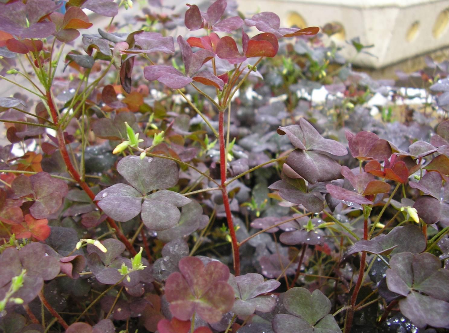 Красная кислица является теплолюбивым растением, которое прекрасно подходит для домашнего выращивания. Высота этого кустика может достигать 15-17 сантиметров. Треугольная кислица выделяется крупными листьями с разнообразной окраской. Края листьев имеют темный пурпурный оттенок, в то время как центральная часть более светлая.