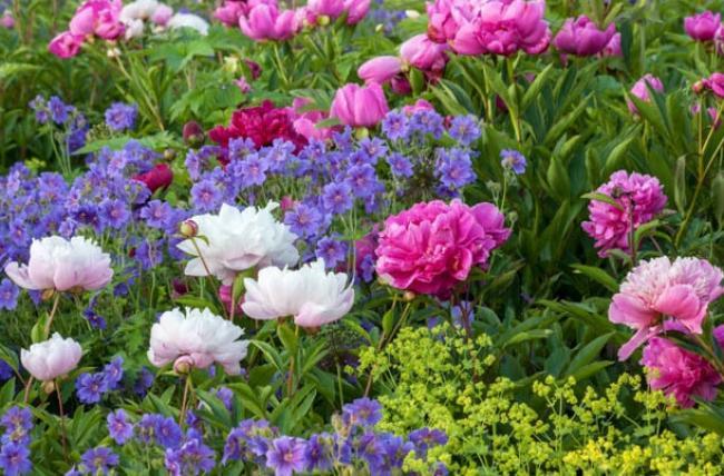 Какие цветы хорошо смотрятся с пионами?