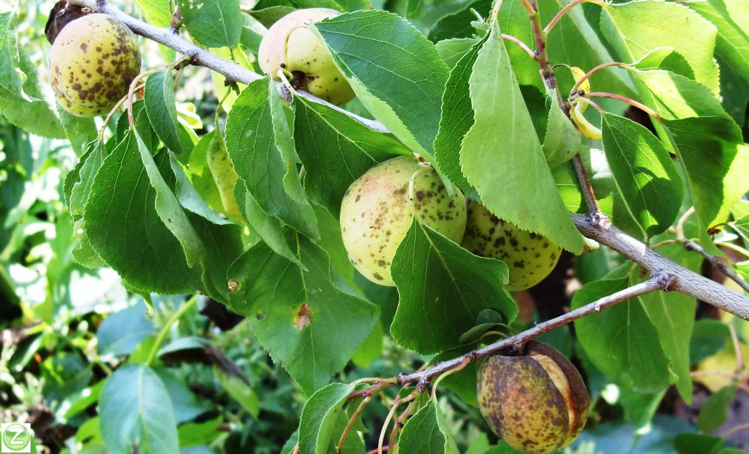 Симптомы и последствия: Клястероспориоз проявляется в виде коричневых пятен на листьях, которые могут привести к образованию дырочек. Если не принять меры, это может привести к преждевременному опадению листьев и снижению урожайности.