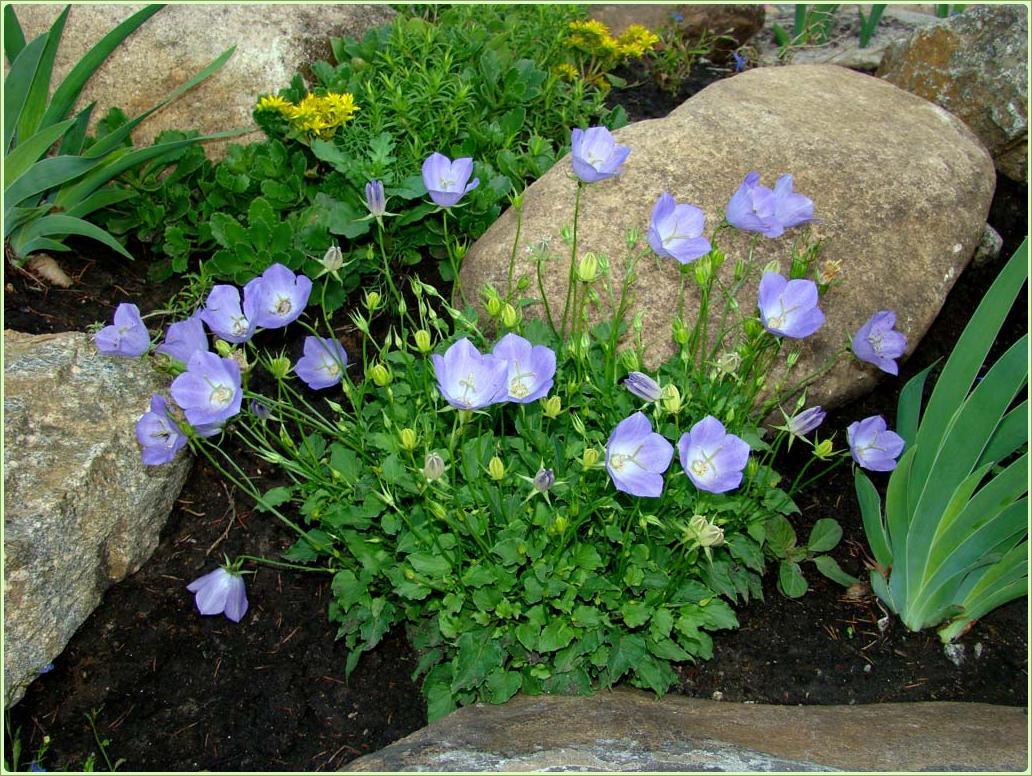 Домашние клумбы можно эффектно украсить полевыми цветами, в частности, колокольчиками, которые произрастают в Карпатах. Эти растения отличаются неприхотливостью в уходе, стойкостью к морозам и радуют глаз своим цветением на протяжении всего лета. Пышные кустики активно используются в ландшафтном дизайне. Многие садоводы выбирают именно эту культуру, поскольку она может обходиться без пересадки до пяти лет.