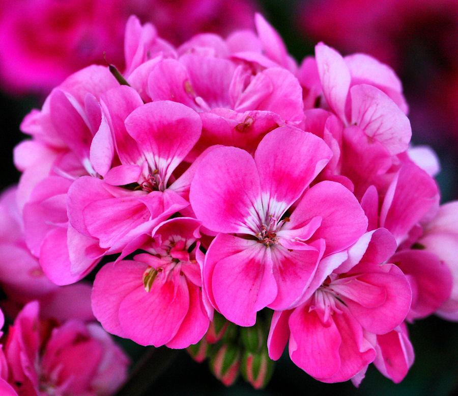 Это растение прекрасно чувствует себя на клумбах, подоконниках и в подвесных кашпо. Оно цветет даже при температуре 12°С. В отличие от герани, цветок пеларгонии имеет пять лепестков, два из которых значительно больше остальных. Зонтичное соцветие включает множество венчиков.