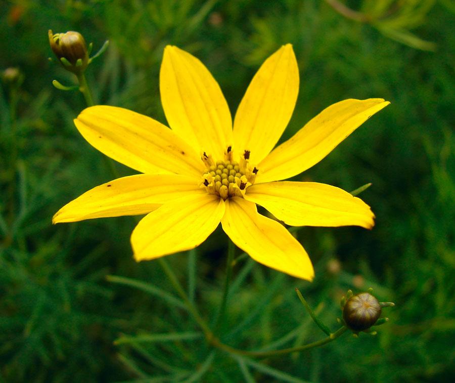 Цветение начинается в июле. Рекомендуется обновлять посадки кореопсиса крупноцветкового каждые три года.