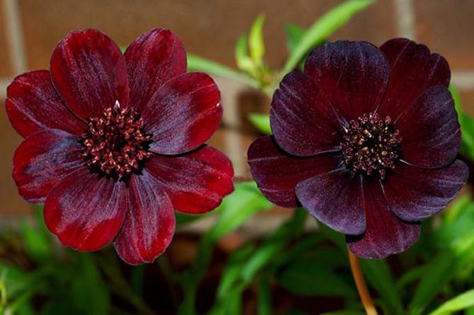 Кроваво-красная космея также известна как шоколадная космея из-за характерного аромата, который излучают ее цветы.