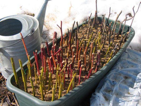 Наиболее распространённый метод размножения – это использование горизонтальных отводков. Этот способ считается наиболее эффективным для кустов возрастом три-четыре года. Его основное преимущество заключается в том, что с одного куста можно получить до десяти отводков, пригодных для размножения. Рекомендуется заняться подготовкой материала в марте, чтобы успеть до начала распускания почек.