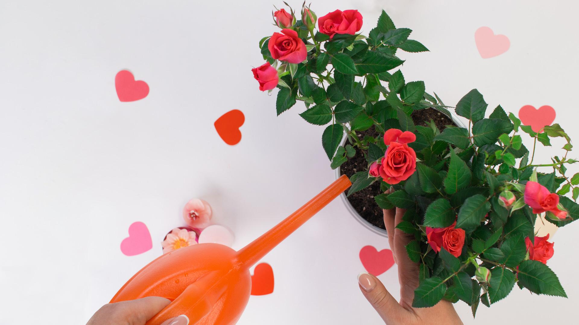 В домашних условиях полив следует осуществлять по мере высыхания верхнего слоя почвы. В период активного роста и цветения необходимо обильно поливать розы, избегая при этом застоя воды в поддоне.