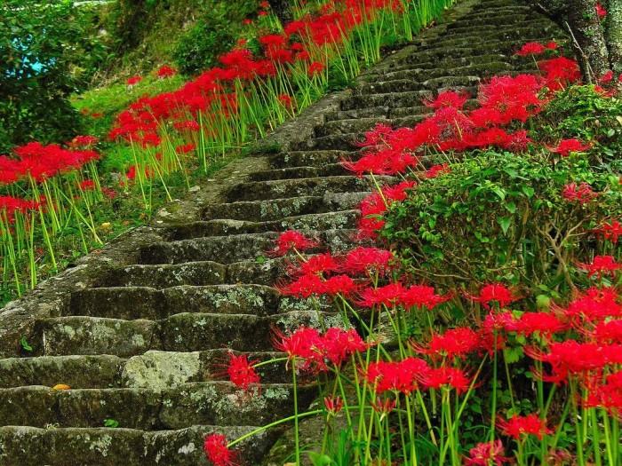 Символика в Японии: В японской культуре ликорис, известный как «Ханагасуми» (花霞), ассоциируется с осенью и часто символизирует печаль и утрату. Цветы ликориса распускаются в это время года, и их яркие красные и желтые оттенки напоминают о красоте, которая приходит с изменением сезонов, но также о скоротечности жизни.