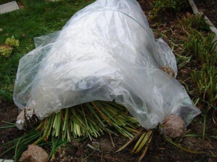 Важно! После обрезки отцветших соцветий кусты следует мульчировать опавшими листьями или сухой травой. Сверху рекомендуется установить каркас из проволоки и накрыть его пленкой. Такая дополнительная защита поможет сохранить растения в целости до наступления весны.