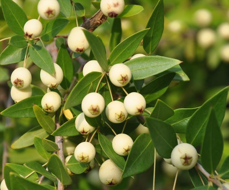 Осенью на растении образуются пурпурные ягоды, мясистые и шарообразные, каждая из которых содержит одно семя. Эти ягоды долго остаются на ветках, придавая растению декоративный вид.