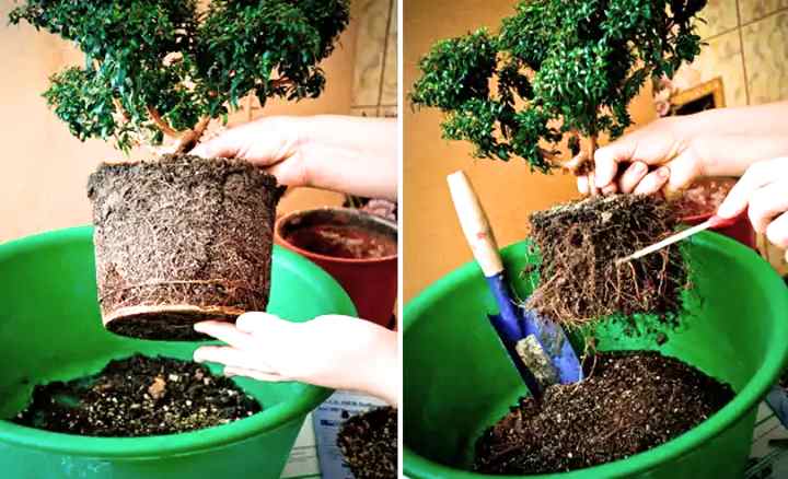 - Осторожно обрежьте запутанные и высохшие корешки.