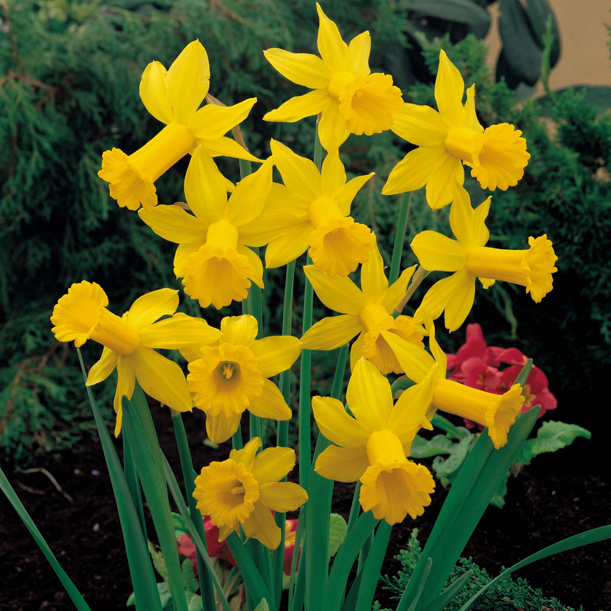 Во-вторых, нарциссы прекрасно подходят для создания бордюров и клумб. Их можно высаживать в ряд, создавая четкие линии и формы, что придаст участку аккуратный и ухоженный вид. Трубчатые виды нарциссов, такие как Narcissus ‘King Alfred’, идеально подходят для таких целей благодаря своей высокой и прямостоячей форме.
