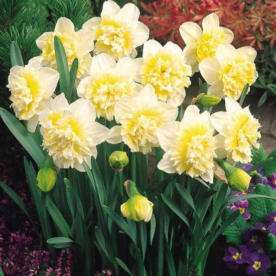 | Жонкиллиевые нарциссы | Желтые, белые | Несколько ароматных цветков на стебле, листья узкие, цилиндрические. |