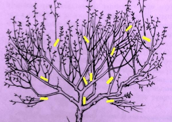 Важно! Каждый год необходимо увеличивать расстояние между ветками, как минимум на 7-10 см.