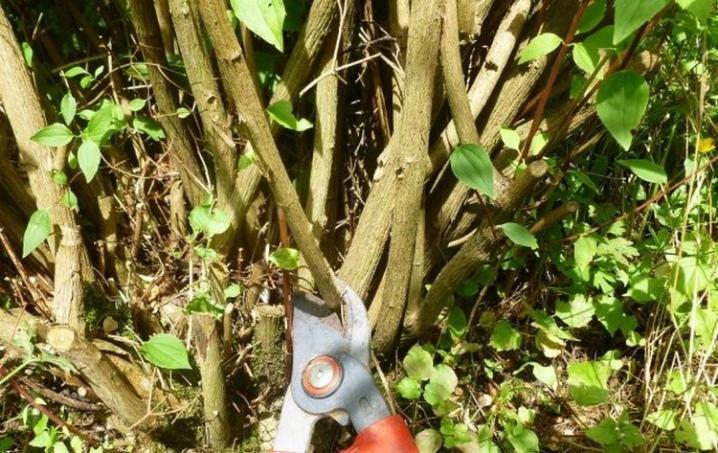- Удалить старые побеги, которые загущают куст, до уровня земли.