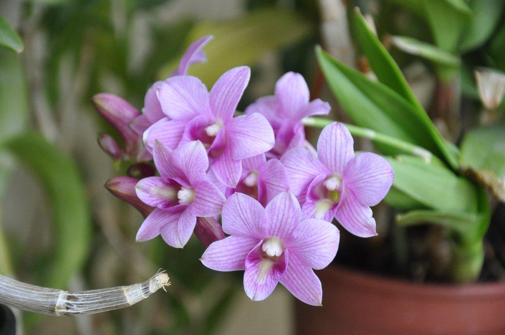 Условия для цветения: Для успешного цветения дендробиума важно создать контрастные условия между летом и зимой. В летний период орхидее требуется яркий свет и высокая температура, а зимой — более прохладные условия и уменьшение полива. Это помогает растению «понять», что пришло время для цветения.