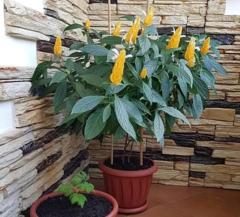 Это растение известно своими эффектными бутонами и насыщенными цветами. У желтого пахистахиса бутон напоминает колос, окруженный прицветковыми листьями, что заставляет некоторых любителей растений сравнивать его с креветками.