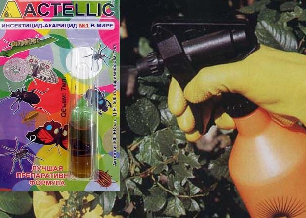 Актеллик. Это надежное средство для борьбы с вредителями. Обработку пораженных растений проводят каждые 2 недели. Работы следует выполнять на свежем воздухе, используя индивидуальные средства защиты. Если площадь поражения велика, рекомендуется накрыть цветочный горшок полиэтиленовым пакетом после обработки.