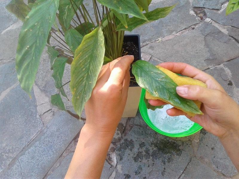 Мыло. Обработайте цветочный горшок и само растение хозяйственным мылом. Удалите пену через 3 часа. Чтобы сохранить необходимую влажность, накройте растение полиэтиленовым пакетом на сутки.