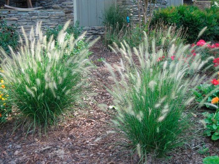Пеннисетум лисохвостный служит ярким фоном для цветущих кустарников и травянистых растений. Его изогнутые к земле пушистые соцветия, колеблющиеся на ветру, напоминают струи воды.