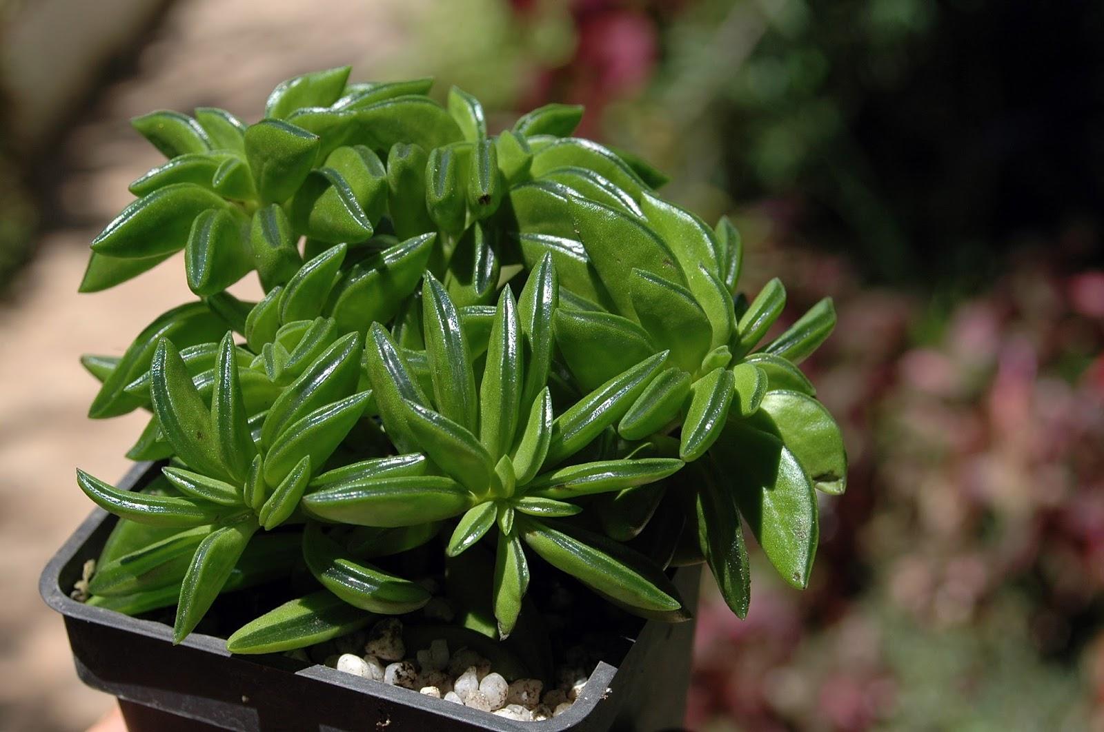 - Мутовчатая. Характеризуется толстыми, мощными побегами, которые свисают из горшков. Во время цветения на их вершинах появляются тонкие зеленые колоски и мелкие цветочки. Листья округлые, сидячие и собраны в мутовки, с нижней стороны они имеют контрастный красноватый оттенок.