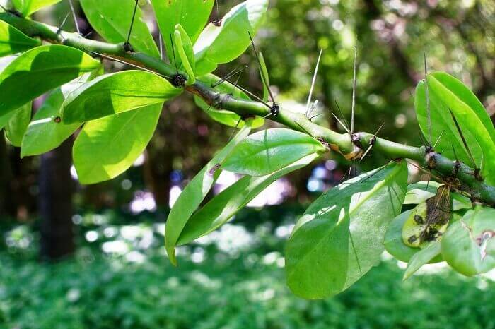 Высота этого кустарника может достигать 10 метров. В течение года побеги могут вырасти на дополнительные 20 сантиметров. На ветвях перескии можно увидеть не только листья, но и длинные колючки.