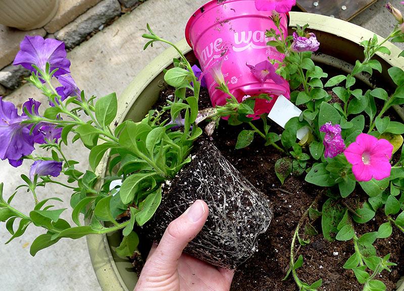 Поливать только по мере высыхания, особенно если растения посажены недавно и корни не оплели весь земляной ком. Определить, хорошо ли увлажнен грунт, можно по весу горшка. Выращивание цветов петунии в горшках или контейнерах на балконе предусматривает правильный подбор емкостей.