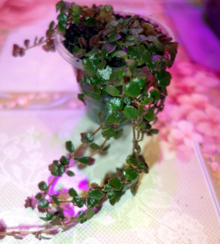 Еще одним растением с поникающими стелющимися ветвями является пилея мелколистная. На сочных, активно ветвящихся побегах расположено множество мелких листьев, размер которых обычно составляет от 0,3 до 0,5 см.