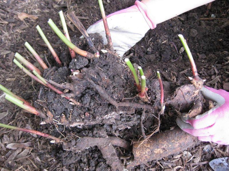 - Выкапывание: Осторожно выкопайте корневище с помощью лопаты, стараясь не повредить корни. Лучше всего делать это в дождливую погоду или после полива, когда почва более рыхлая.