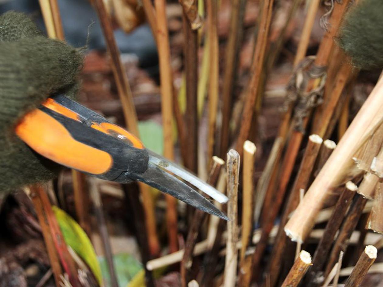 С началом осени пионы начинают подготавливать к зимним холодам. Для этого все побеги обрезают, оставляя длину 10-15 см. Обрезанные части можно использовать в качестве защитного укрытия, положив их сверху.
