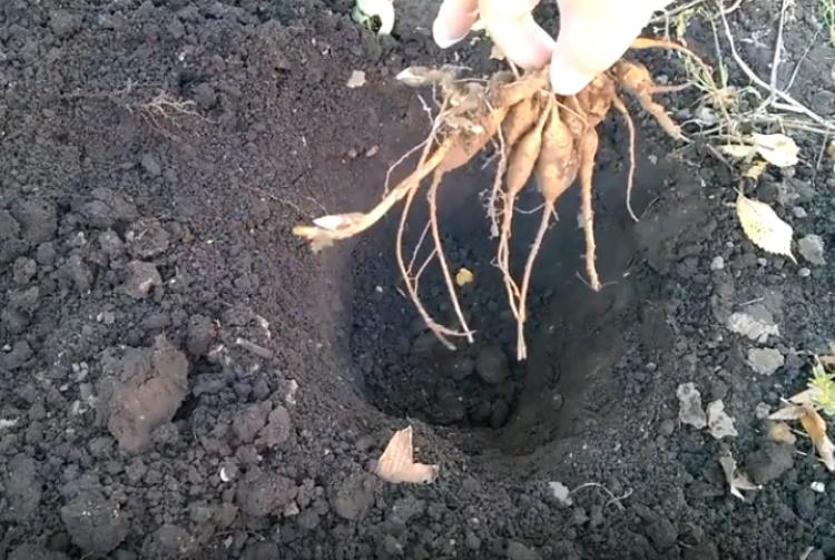 За день до высадки подготовленную яму необходимо полить водой с добавлением фунгицидного биопрепарата. После того как грунт осядет, добавляют слой сухой почвенной смеси. Корневище следует заглубить до верхнего глазка, который должен находиться на уровне поверхности земли.