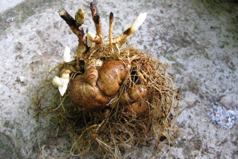 Перед посадкой деленку внимательно осматривают, удаляя поврежденные и подгнившие корни. Срезы и отломанные участки корней обрабатывают золой, древесным углем или специальным средством для стимуляции роста. Крупные корни следует укоротить на одну треть их длины.