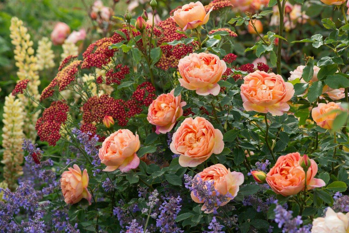 Обратите внимание! Роза Остина прекрасно сочетается с чайно-гибридными и крупноцветковыми сортами роз.