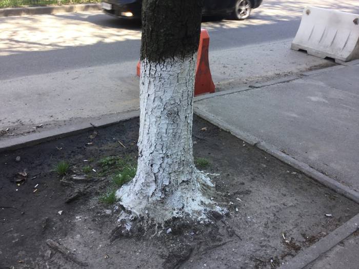 Важно помнить, что покрытие лишь половины ствола белилами не даст желаемого эффекта.