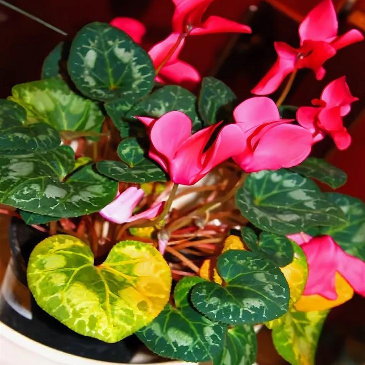 Условия ухода: Неправильный уход, такой как переувлажнение или недостаток света, также может способствовать желтению листьев. Цикламены предпочитают умеренный полив и яркий, но рассеянный свет. Если условия не соответствуют этим требованиям, это может негативно сказаться на здоровье растения во время цветения.