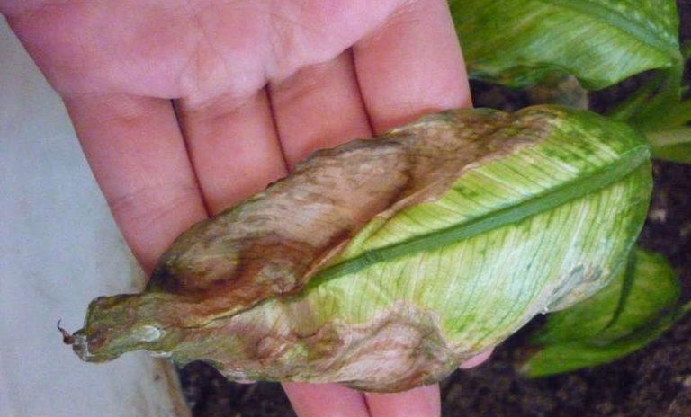 | Избыток питательных веществ | Кончики листьев желтеют и сохнут, могут появиться коричневые пятна. | Промыть почву большим количеством воды, уменьшить дозировку удобрений. |