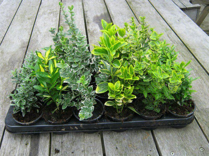 - вечнозеленые виды кустарников с плотными листьями. Такой бересклет часто выращивают в домашних условиях как комнатное растение. Шаровидный куст может достигать высоты до 50 см;