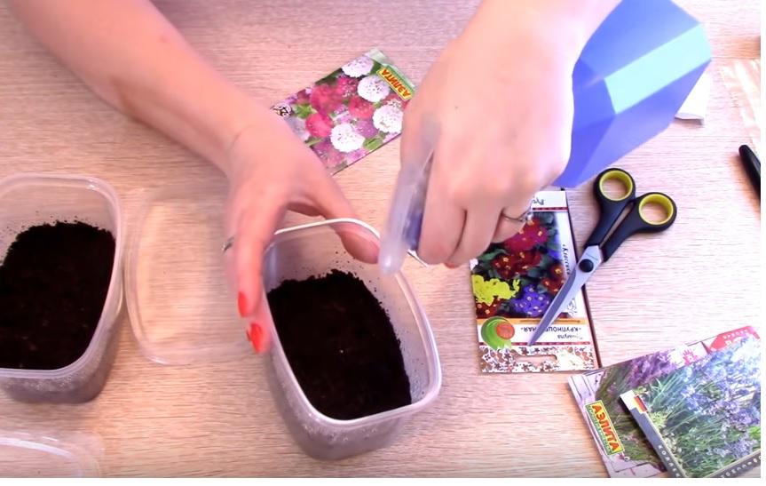 После того как семена размокнут, их раскладывают на увлажненной почве, не вдавливая. Сверху накрывают прозрачным целлофаном.