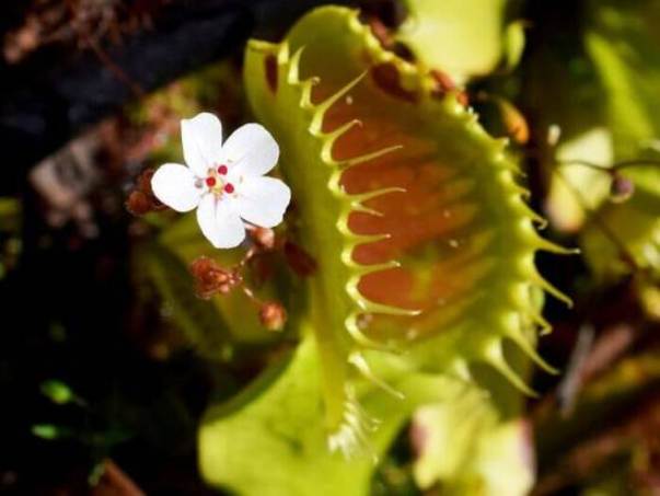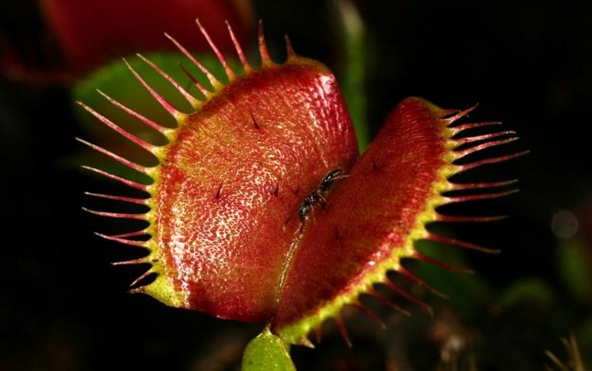 Уникальный механизм ловли: Венерина мухоловка (Dionaea muscipula) имеет специальные ловушки в виде листьев, которые закрываются, когда к ним прикасаются насекомые. Каждая ловушка оснащена чувствительными волосками, и если два из них будут задействованы в течение 20 секунд, это запускает механизм закрытия.