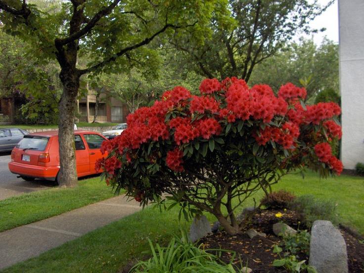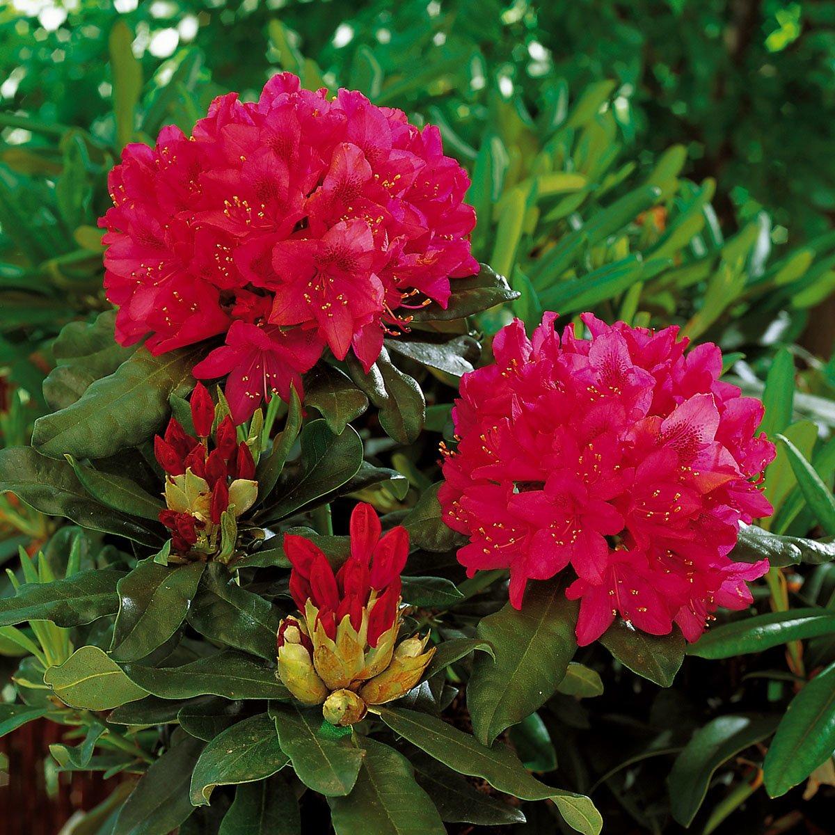 Яркие цветы: Этот сорт рододендрона отличается крупными, ярко-красными цветами, которые распускаются в конце весны и начале лета. Цветы привлекают не только людей, но и опылителей, таких как пчёлы и бабочки.