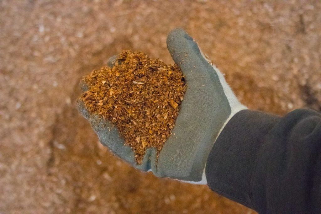 Стакан следует осторожно снять. Растение с развитой корневой системой помещается в ямку и засыпается питательной почвой. Высаженные растения требуют обильного полива. После того как вода полностью впитается в почву, участок следует покрыть слоем мульчи. Для этого подойдут опилки.