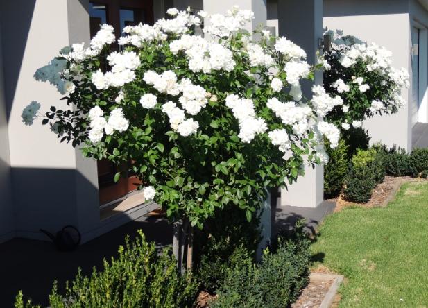 Универсальность: Роза Айсберг прекрасно подходит как для одиночных посадок, так и для создания живых изгородей или групповых композиций. Она также хорошо смотрится в контейнерах, что делает её популярной для городских садов и балконов.