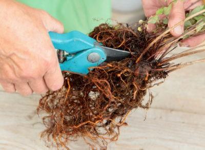 Для начала необходимо выкопать куст материнского растения. Затем его можно разделить на две части или отделить периферийную часть. В каждой из этих частей должны оставаться корни и хотя бы один побег. На побеге рекомендуется оставить 3-4 почки, а остальную часть следует аккуратно обрезать. Корни перед посадкой обрабатываются глиняной болтушкой. Подготовленные кустики высаживаются в землю, поливаются и окучиваются.
