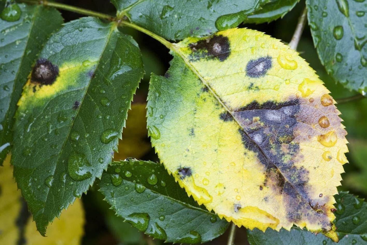 - Черная пятнистость – это грибковое заболевание, проявляющееся в виде темных и коричневых пятен. Для лечения всего куста необходимо применять раствор медного купороса или бордосскую смесь трижды в неделю, с повторной обработкой через 7 дней;