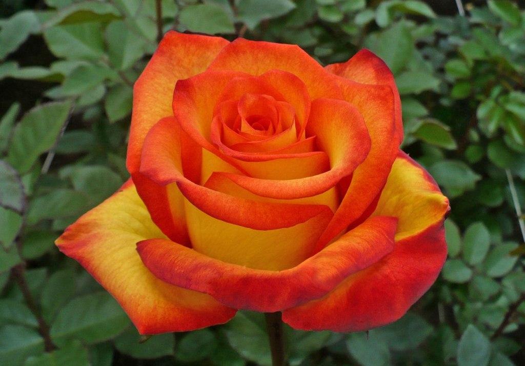 Эта культура отличается высокой плотностью лепестков, которые имеют сочетание желтых и красных оттенков: края бутонов ярко-красные, а ближе к основанию они становятся светлее. Из-за такой окраски некоторые садоводы называют сорт розой Оранж Мэджик (Orange Magic), хотя это название не совсем корректно и не соответствует официальному.