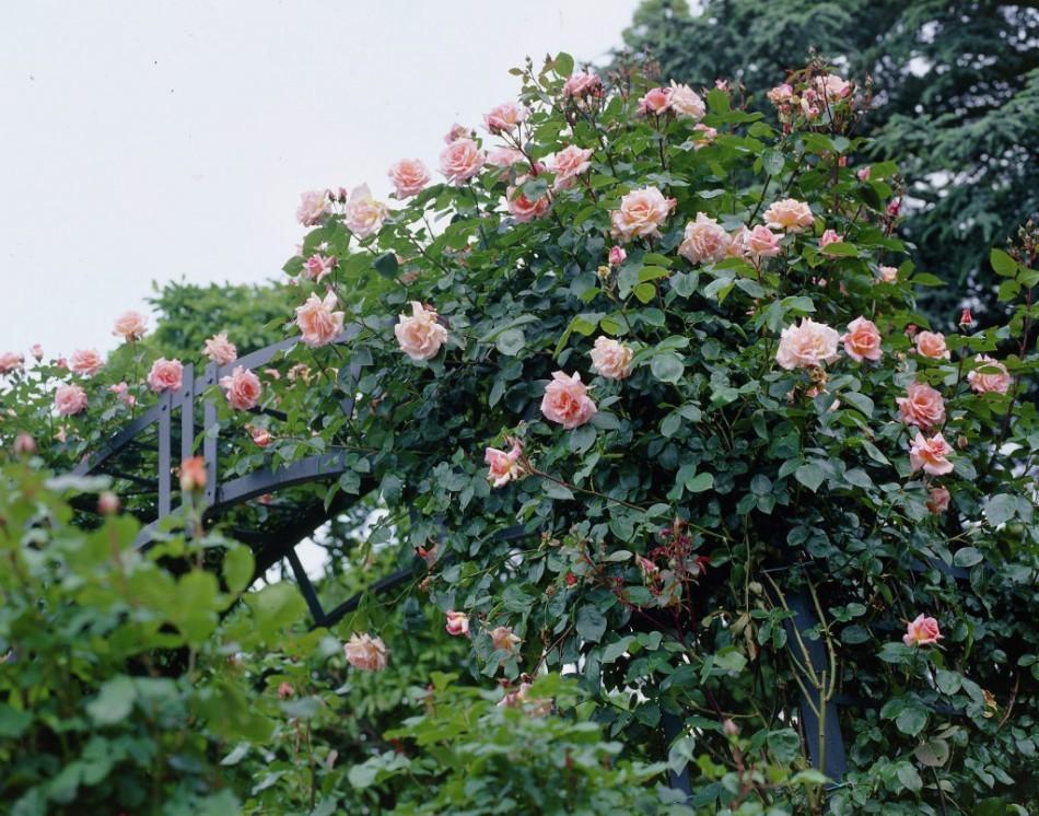 - Она прекрасно вьется вокруг различных опор, таких как перголы, колонны, беседки и шпалеры.