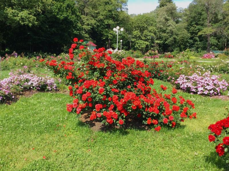 Роза Ред Бриллиант, относящаяся к парковым сортам, является одним из самых популярных выборов в ландшафтном дизайне. Она великолепно дополнит изгородь или может быть высажена в качестве отдельного акцента. Этот сорт хорошо разрастается в ширину. Парковая разновидность «Симпатия Старс» выделяется своими ярко-вишневыми бутонами, которые сохраняют насыщенность цвета даже под прямыми солнечными лучами.