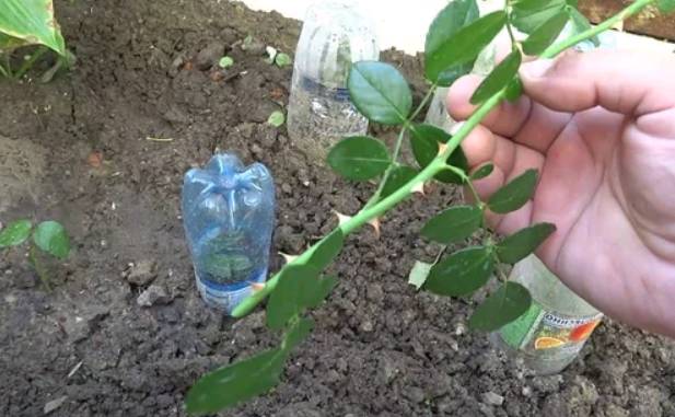 Черенки помещают в подготовленный грунт и укрывают нетканым материалом или надевают на них обрезанные пластиковые бутылки. В таком состоянии куст будет развиваться в течение нескольких месяцев.