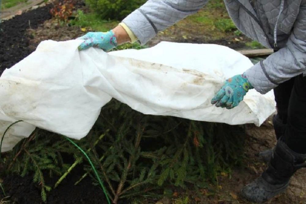 Для зимовки растений создают укрытие из еловых веток и пленки, закрепленной на опорах. Перед этим розы обрабатывают инсектицидами для защиты от грибковых инфекций. Ветки пригибают к земле, засыпают и накрывают.